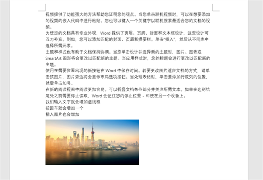 如下图所示,新建文档打开后,就会出现一个虚线框,它不是表格不是边框线,无论我们输入什么内容,插入什么图片,它都会增加。