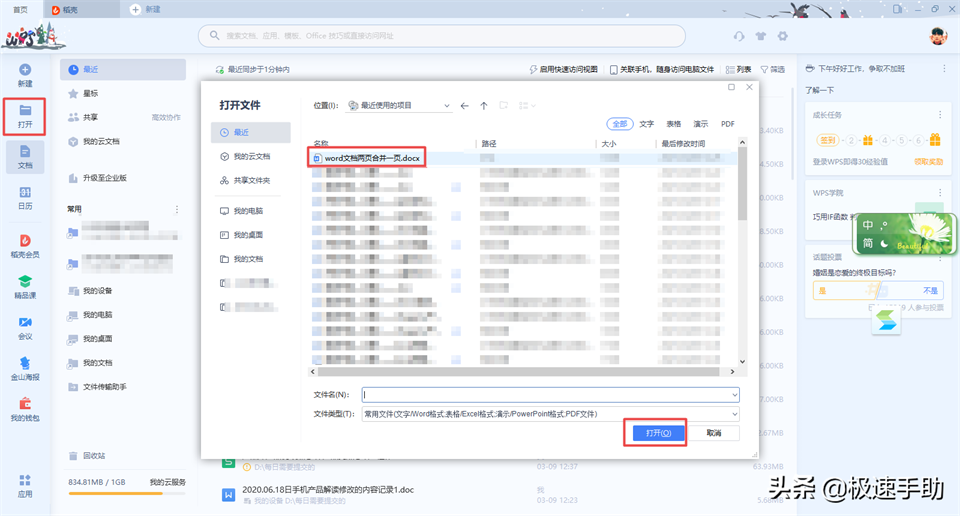 第一步,在电脑的桌面上找到WPS程序,然后双击打开,接着将需要进行处理的Word文档也同时打开。
