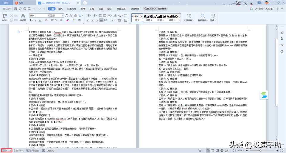 第四步,最后我们就可以成功地将文档中的两页内容合并成一页了。