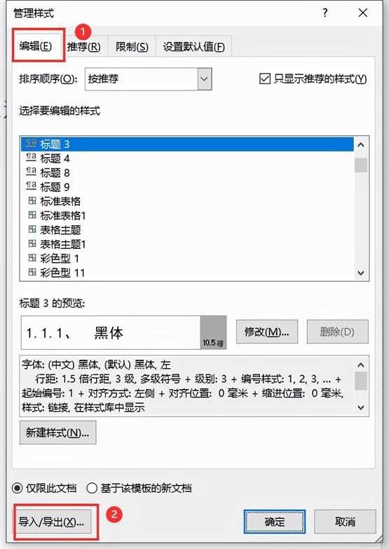 步骤三、进入管理样式后,我们选择编辑,点击左下角的导入、导出