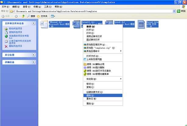 第三步,在资源管理器的上方地址栏中输入C:\Documents and SettingsAdministratorApplication DataMicrosoftTemplates,然后,在这个文件目录里有一个或多个名字类似为 “Normal.dot” 的文件,这是Word公用模板的文件。