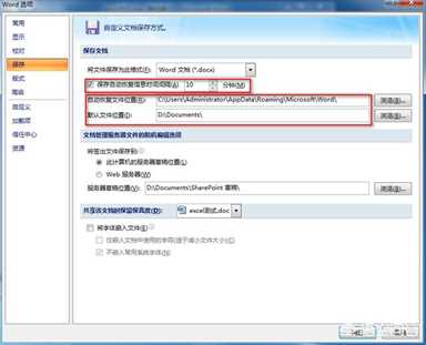 打开word选项,点击保存,右边就可以看到自动保存的时间和路径。