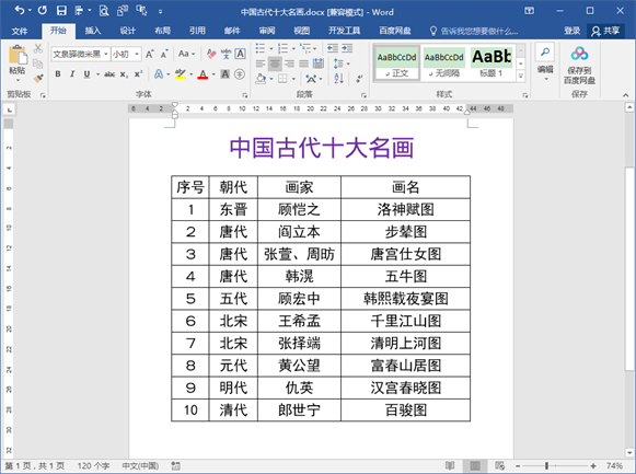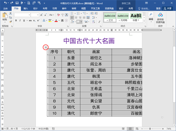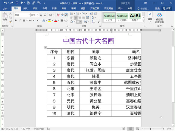 4. 返回文档,可见整个表格已经在页面中完整显示出来了。
