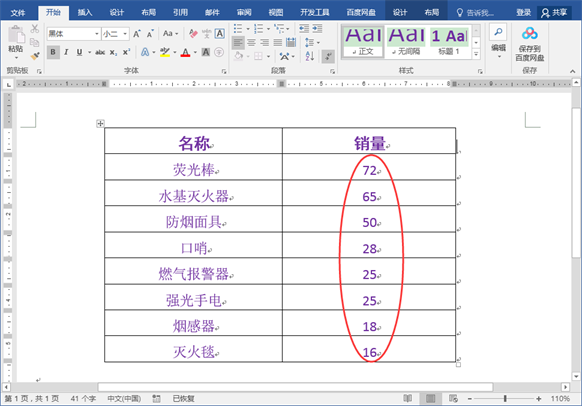 4.返回文档,可见表格中的数据已经按“销量”大小进行了降序排序。