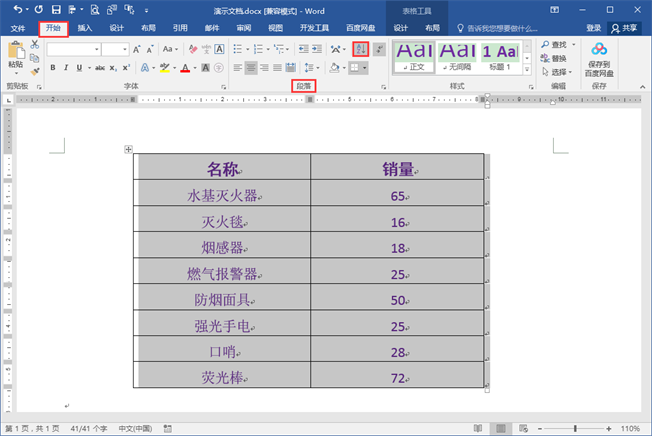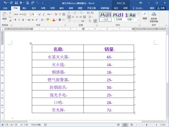 下图文档表格中第一行为标题行,接下来我们想实现的效果是按“销量”大小对表格数据进行降序排序。