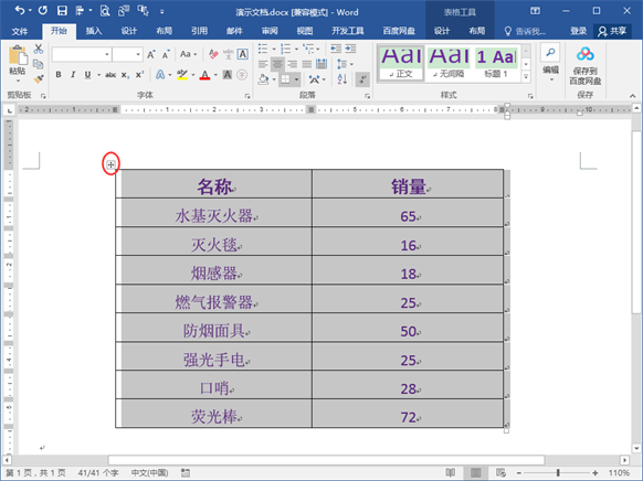 1.鼠标单击表格左上方的小方块(见红色圆圈标注处)选中整个表格。