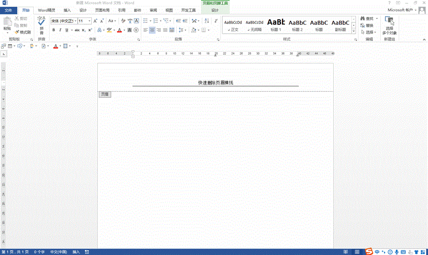 第二种是利用快捷键。在页眉所在的位置按下快捷键Ctrl+Shift+N可以快速去除下划线哦。