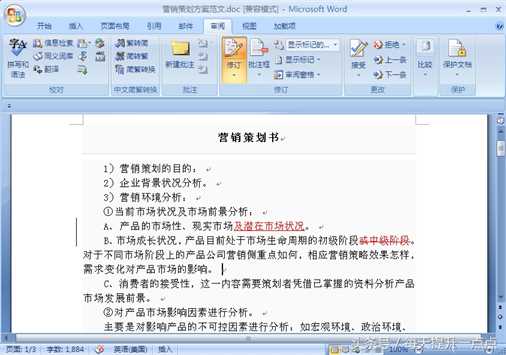 下面,再举一个老板审阅过得只有新增和删除的营销策划方案。