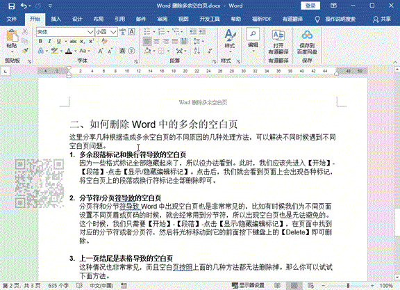 二、如何删除Word中的多余的空白页