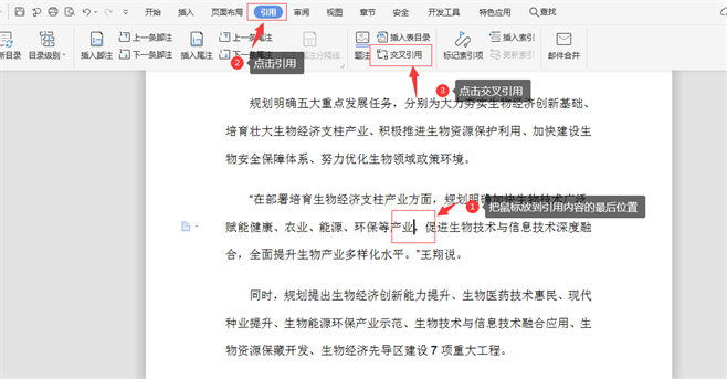 1、把鼠标放到文献引用文字的最后位置,然后点击“引用”-“交叉引用”