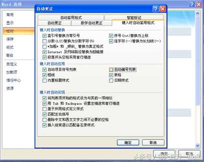 3、“自动更正”对话框里,在“键入时自动套用格式”标签下,勾选掉“自动编号列表”。
