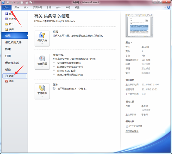 选文件菜单,点选项: