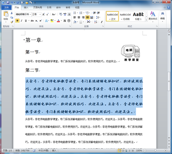 如图,打开WORD文档,设置一种艺术字体: