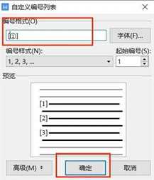 ✿ 步骤三:更改编号格式为[ ],接着点击确定,参考文献编号排序就完成了