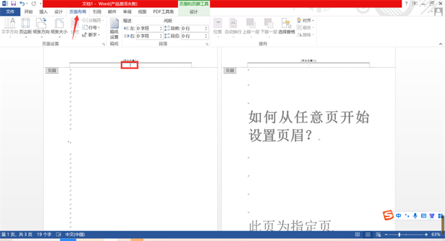 ✿ 将鼠标光标放在指定页的前一页,点击工具栏的布局。✿ 找到页眉,插入合适的页眉