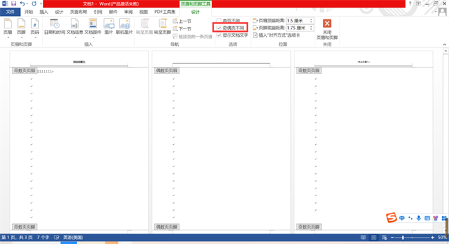 ✿ 勾选【奇偶页不同】之后,页眉处就会出现奇数页页眉和偶数页页眉的字样,这时我们就可以分开设置奇偶页的页眉了。