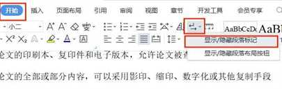 ✿ 步骤一:点击开始栏,选择显示段落标记,注意显示和隐藏段落标记通过单击可进行切换。