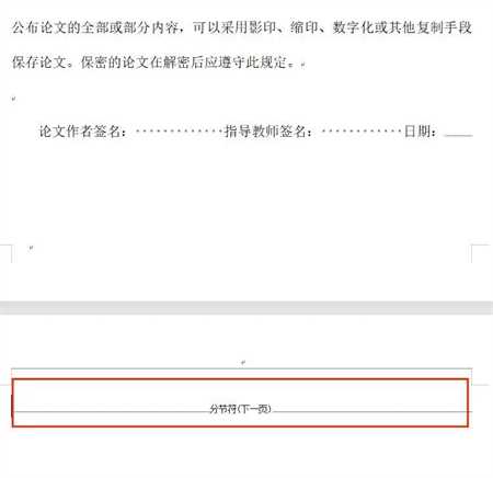 ✿ 步骤二:可以看到分节符出现,这就是产生空白页的原因,鼠标放在分节符上并按shift+delete便可删除该分节符。