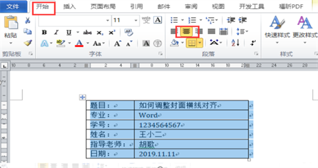 ✿填写好相关信息后,选中表格,点击开始——居中,使表格居中显示