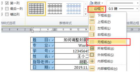 ✿选中第一列,点击边框下拉按钮,选择无边框;