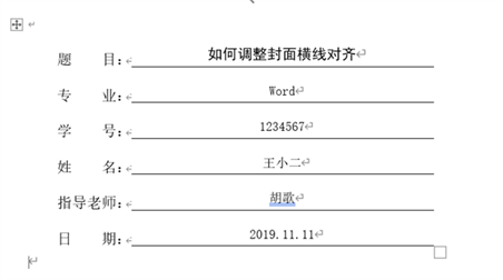 最佳答案封面问题1:横线前面的文字怎么对齐✿ 打开word,点击插入——表格,根据需要的行数和列数插入表格,本图例里有6行内容:题目、专业、学号、姓名、指导老师、日期,因此,我们插入6行*2列表格。✿填写好相关信息后,选中表格,点击开始——居中,使表格居中......