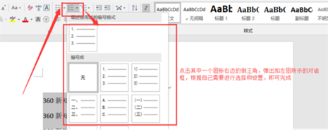 ✿ 步骤三,根据自己的需要点击其中一个图标右边的倒三角,弹出如图所示的对话框,再根据自己的需要进行设置和选择不同的编号格式即可。