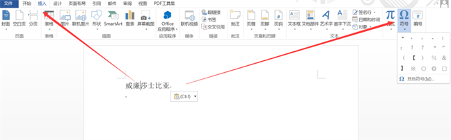 ✿ 打开需要插入特殊符号的文档,点击工具栏的【插入】,选择【符号】下拉菜单栏,点击【其他符号】。