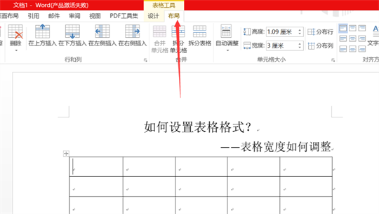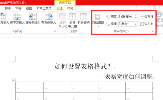 2、在工具栏下可自由输入宽度数值,也可选择【自动调整】表格。