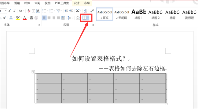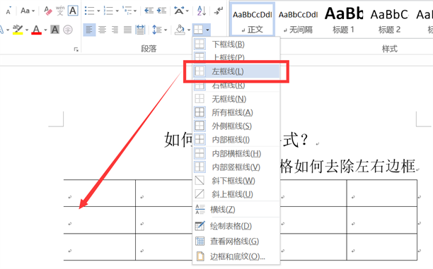 2、点击【左框线】,表格左边框被去除;同理,如要去除右边框,点击【右框线】即可。