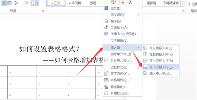 1、光标放在需要增加表格的位置,单击鼠标右键,选择【插入】,在右侧的小对话框中选择所增加表格的位置。