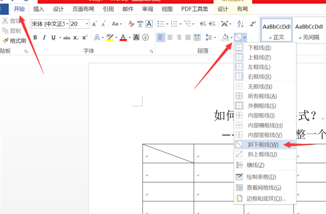 ✿ 单斜线表头的制作:将光标放在表头单元格,在【开始】菜单栏下找到【边框】,选择【斜下框线】,在里面输入内容即可。