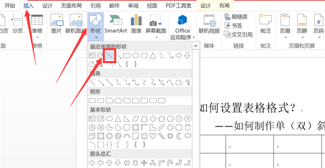 1、点击【插入】,选择插入【形状】,找到直线进行绘制。