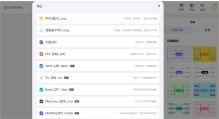 4、编辑完成之后,点击右上角的【导出】按钮,选择【PNG】格式吗,将思维导图文件导出为图片文件;