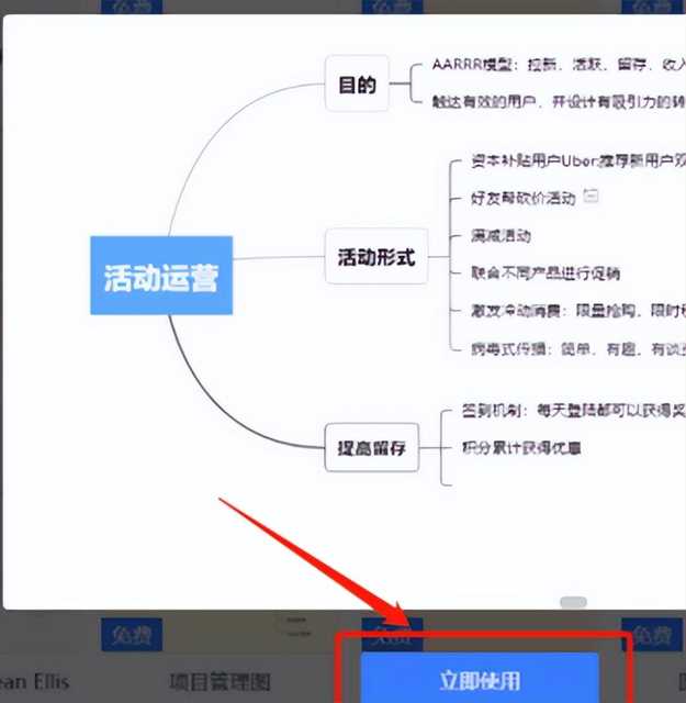 2、接着我们就可以在思维导图窗口中,看到可以选择的思维导图模板样式,如“活动运营”“会议记录模板”等。