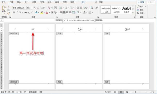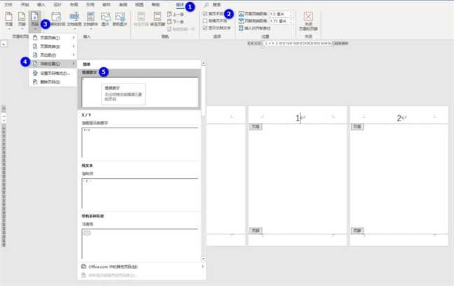 断开联系以后,在设计选项卡中插入页码并设置页码起始值为1