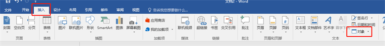 打开文档,在新建文档的工具栏中点击【插入】工具,然后在文本工具栏下点击【对象】旁边的复选框箭头,选择【文件中的文字】