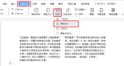 ①选中文本区域,点击【页面布局】——【分栏】——【两栏】即可;