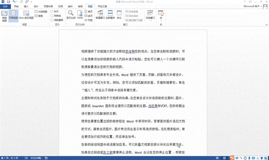 在显示中,标尺就是和网格线都是在这里设置的,导航窗格如果你没有单独设置直接按Ctrl+F就会出来。显示比例可以点进去进行设置,也可以通过右下角的缩放来拖动,也可以通过按住Ctrl键+滚轮进行缩放,值得注意的是,这里的缩放都不会对文档内容格式造成任何影响,类似于Excel中的单元格自定义。后面还有单页、多页的选择。