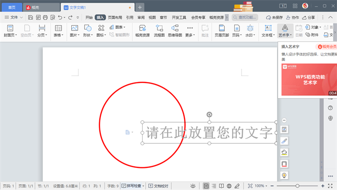 单击【艺术字】输入框,输入公司名称,选中公司名称,单击【文本工具】菜单,单击【文本填充】选择【红色】。
