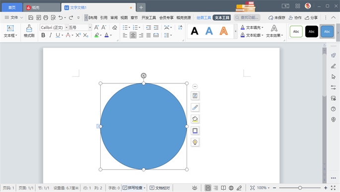 单击【插入】菜单,点击【形状】,在菜单中点选【椭圆】,长按【shift键】的同时,单击鼠标,向下拖选画出一个圆形。