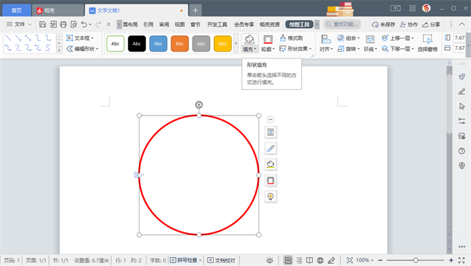 单击【绘图工具】菜单,点击【填充】选择【红色】,再单击【轮廓】选择【无边框颜色】。