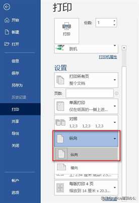 纵向横向打印,直接在打印中设置即可。