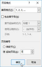 打开“页码格式”对话框,设置“起始页码”为“0”,然后单击“确定”按钮。