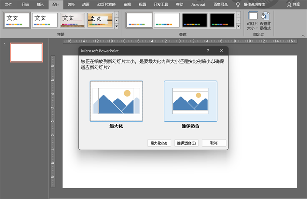 因为此时我们的幻灯片为空的内容,点击“最大化”或者“确保适合”均可以。