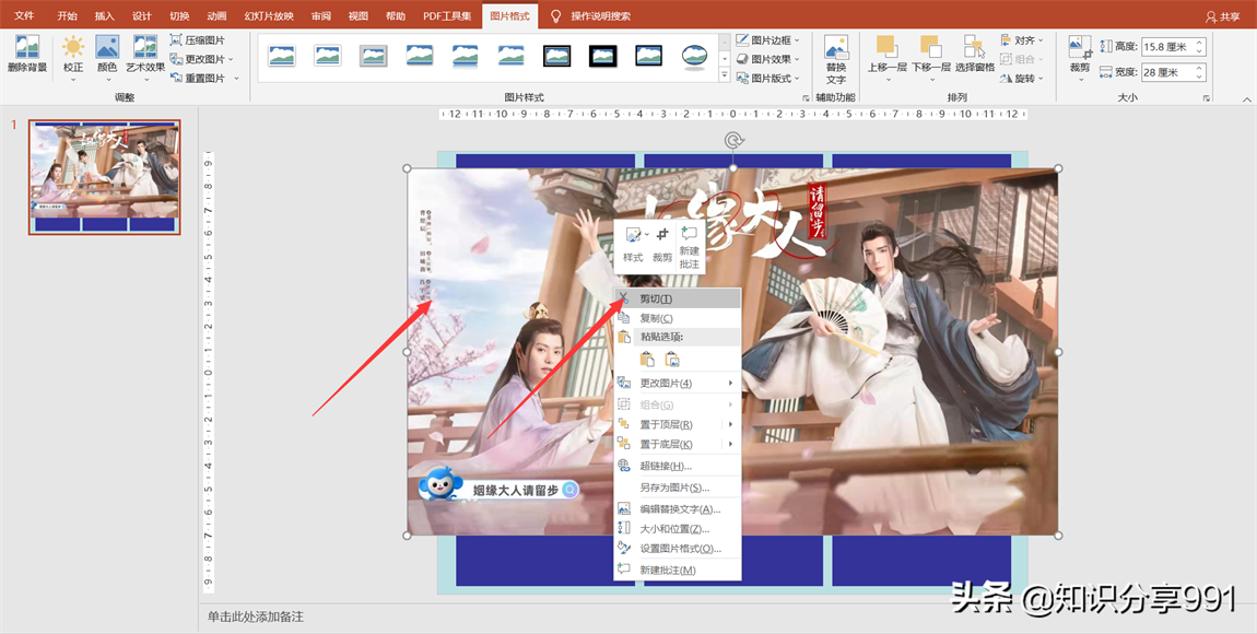 ④鼠标选中图片并点击鼠标右键,在弹出的选项中选择剪切设置。
