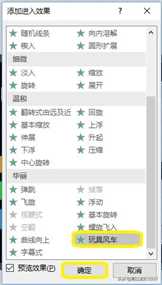 四、选择〖添加动画〗,点击〖更多进入效果〗,弹出〖添加进入效果〗窗口,选定玩具风车,如图。