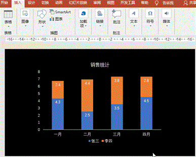 打开PowerPoint软件,新建幻灯片,执行“插入”菜单-“插图”之“图表”-“柱形图”之“堆积柱形图”,“确定”之;在Microsoft PowerPoint中的图表中输入或Copy原始表格数据,关闭表格窗口。