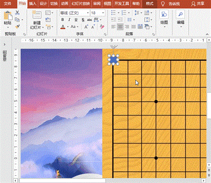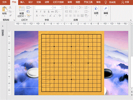 (3)插入黑白棋子图片:同理插入准备好的黑白棋子图片,并调整大小、方向和位置。