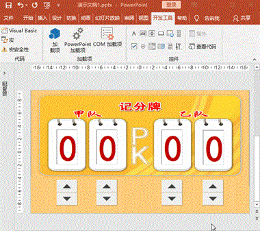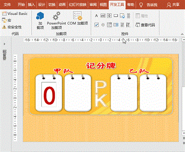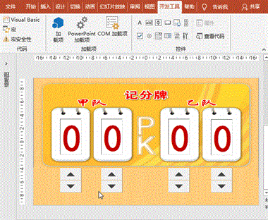 最佳答案实现思路:每点击一次比分数值调节钮,比分增、减1。实现前提:本操作用至“开发工具”菜单项,如菜单工具中没有,添加的方法为:点击“文件”菜单-“选项”-“自定义功能区”-“主选项卡”中找到“开发工具”,点击“添加”按钮即可。操作步骤:1、背景:打开PowerPoint软件,新建幻灯片,右键“设置背景格......