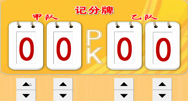 每点击一次比分数值调节钮,比分增、减1。
